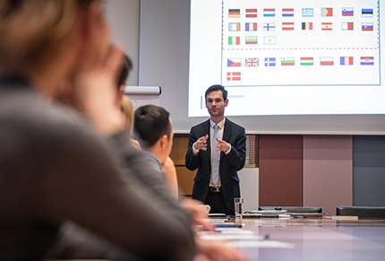 Die Schweizer haben aus dem Angebot der Hauptverwaltung Hessen den Schülerworkshop "Die Geldpolitik im Eurosystem" ausgewählt. In vier Schulstunden bekommt die Klasse ein kompaktes Programm: Los geht es mit den Grundlagen der Geldpolitik. Die  zweite Stunde ist der Strategie des Eurosystems gewidmet. Nach einer Pause ist dann Gruppenarbeit angesagt – eine Simulation von EZB-Ratsentscheidungen. Zum Schluss wird über die aktuelle Lage der Geldpolitik diskutiert.