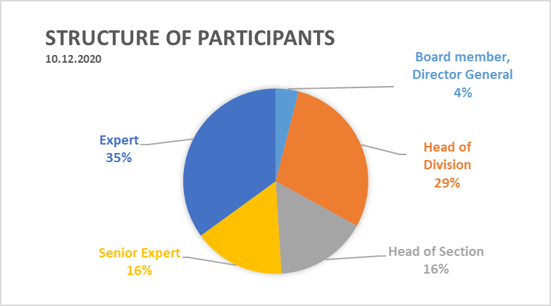Die Kurse wurden gleichermaßen von der Sachbearbeitungsebene (Experts, Senior Experts) und von den Führungskräften (Board, Director General, Head of Division, Head of Section) besucht. Die Evaluierung der Kurse ergab eine sehr erfreuliche Weiterempfehlungsrate von 100 %.