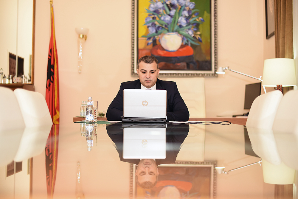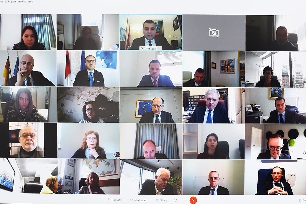 Teilnehmer des virtuellen Meeting auf Monitor ©Bank of Albania