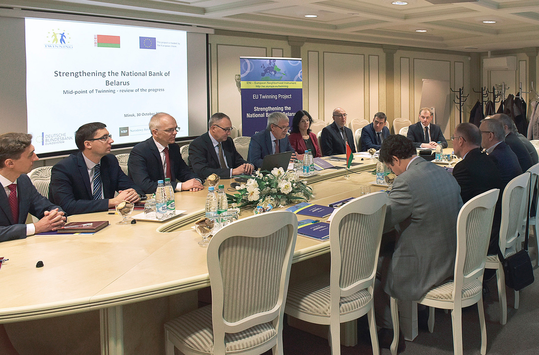 In October 2018, a delegation from the European Parliament visited the National Bank of the Republic of Belarus (NBRB) to appraise the first EU twinning project in Belarus and came away visibly impressed. This project is paving the way for future Belarusian twinning projects and comprises six components: payment systems, financial stability, banking supervision, financial risk management, financial consumer protection and communication policy.