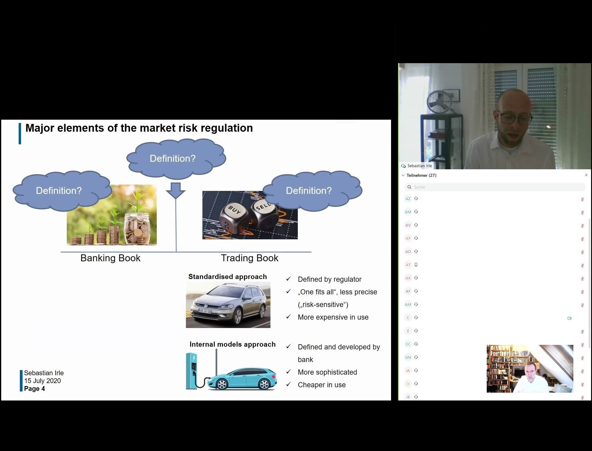 Dr Sebastian Irle discusses the subject of market risk in front of 27 international central bank employees during an online course.