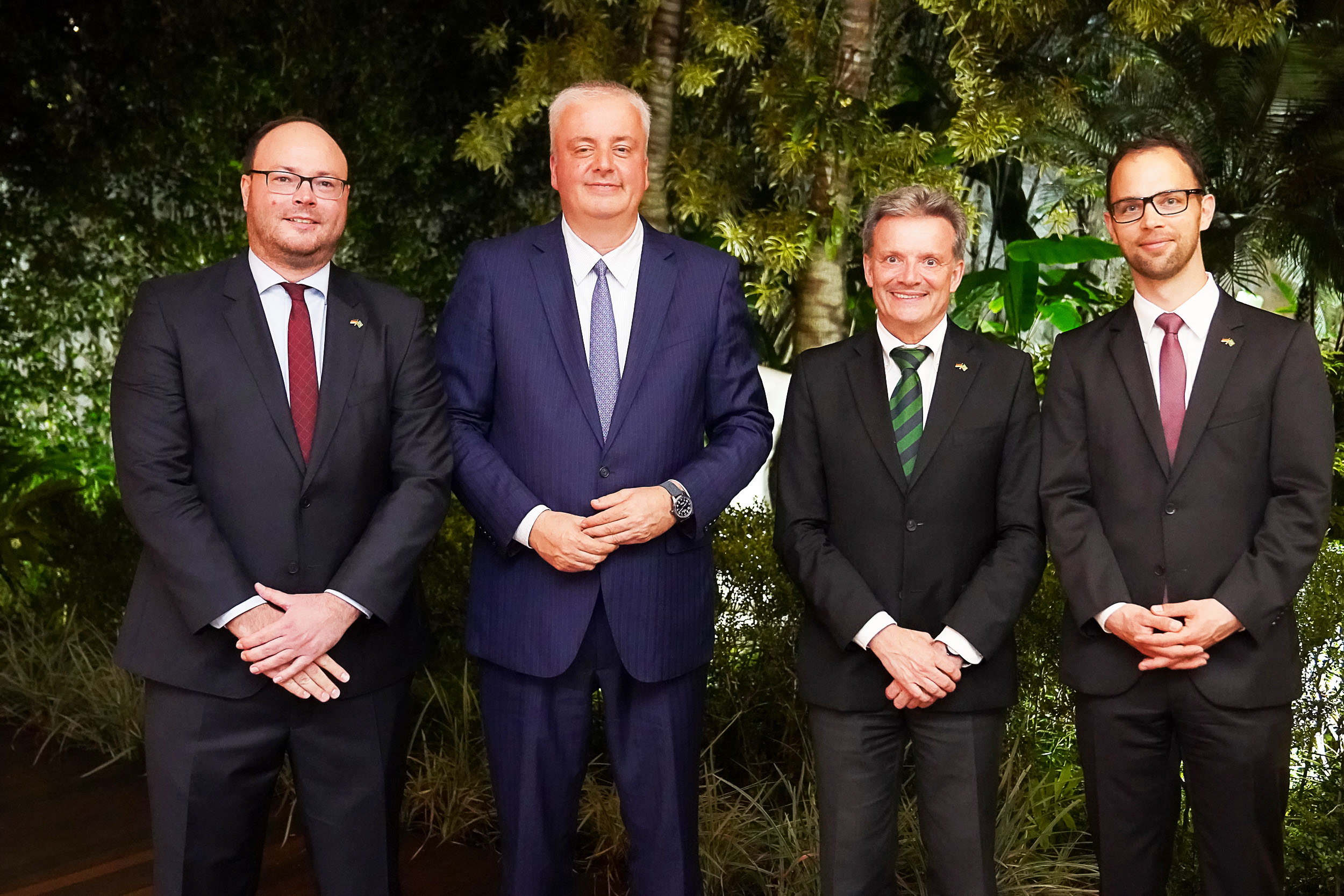 The ceremony marking the change of the Bundesbank representative in the South American city of São Paulo took place in glorious weather conditions in the garden of the residence of the German Consul General on the evening of 25 April. To honour the occasion, Bundesbank Executive Board member Burkhard Balz travelled from Frankfurt for the official inauguration of Alexander Lieber, who had already taken over the role from Eike Berner in July 2021. In his speech, Mr Balz stressed the importance of international cooperation and in-person meetings, especially in challenging times such as these. Indeed, he continued, this is the very reason why the Bundesbank has foreign representatives who observe economic developments in the country of their posting and maintain personal contact with local central banks, supervisory authorities, banks and other key players. In addition to host Dr Thomas Schmitt, around 50 invited guests from the local financial and economic scene as well as the diplomatic community were also present and enjoyed the get-together, with events like this having scarcely taken place in the past two years in Brazil either due to the pandemic.