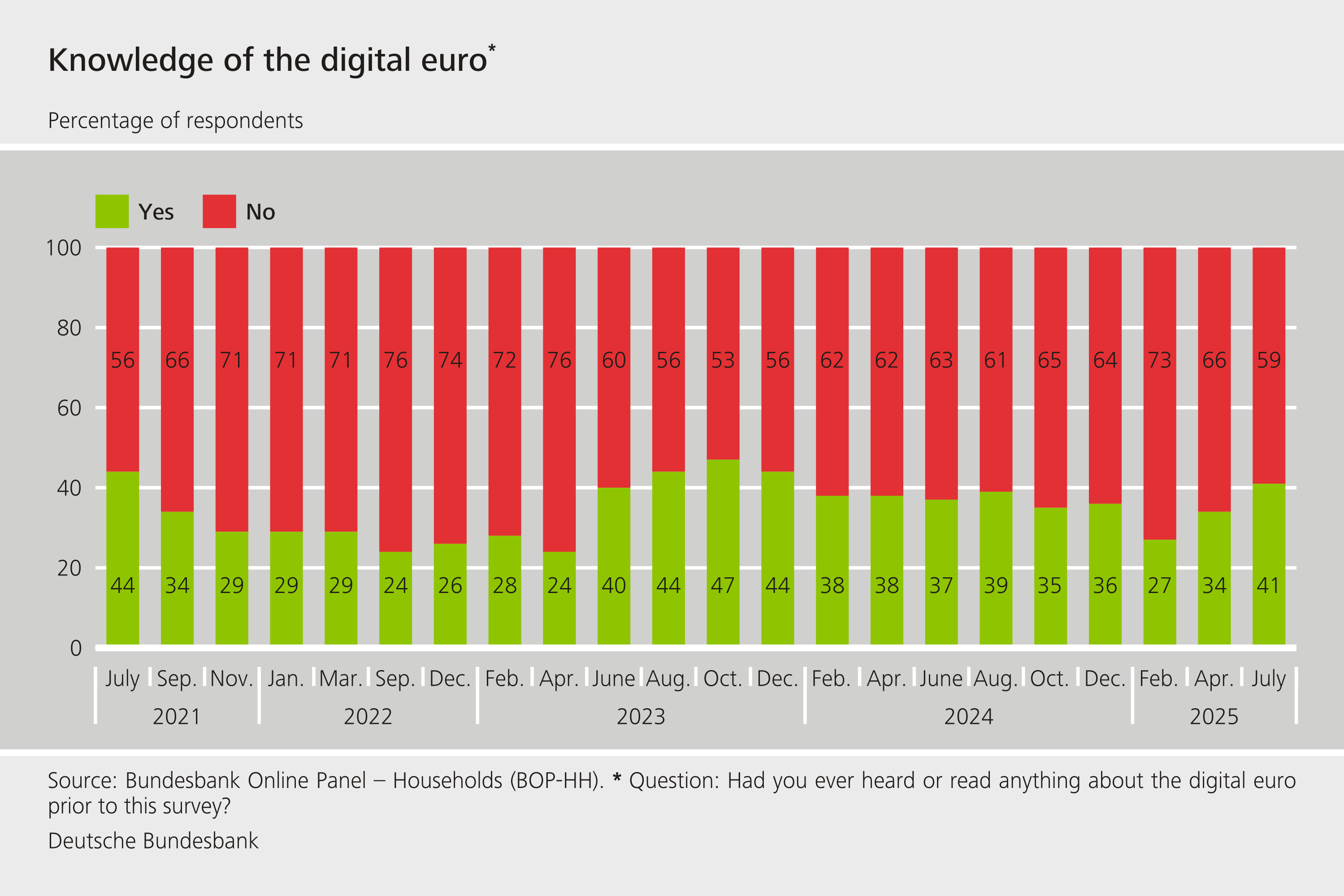 Since July 2021, we have asked first-time respondents to our survey whether they had ever heard or read anything about the digital euro prior to the survey.