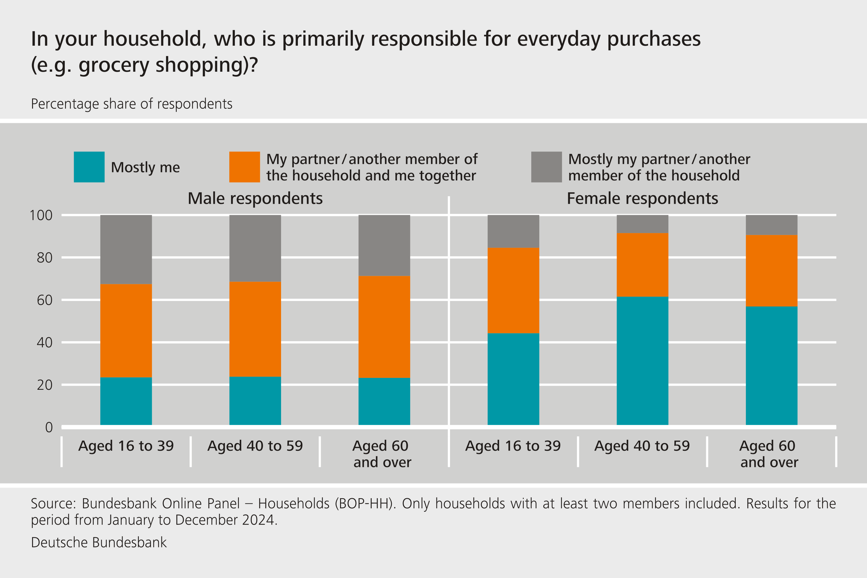 We regularly ask respondents who is responsible for carrying out various activities in their household. Here you can see the results from all surveys conducted in 2024 on who was responsible for everyday purchases, broken down by gender and age group.