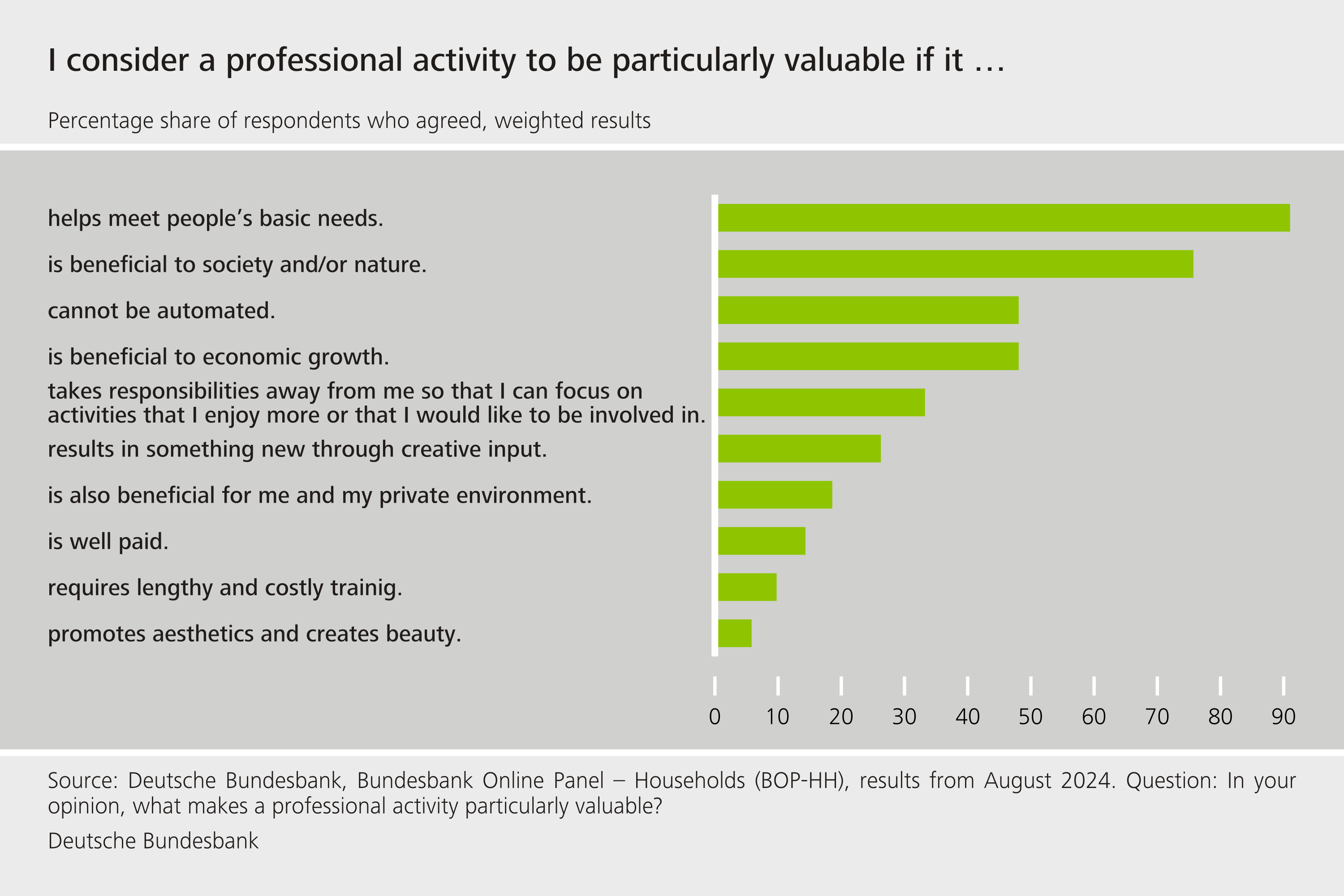 In August 2024, we asked our participants various questions about the appreciation of professional activities. Here you can first see the results of the question about what makes a professional activity particularly valuable to them. The chart below shows which five professional activities were considered particularly valuable.