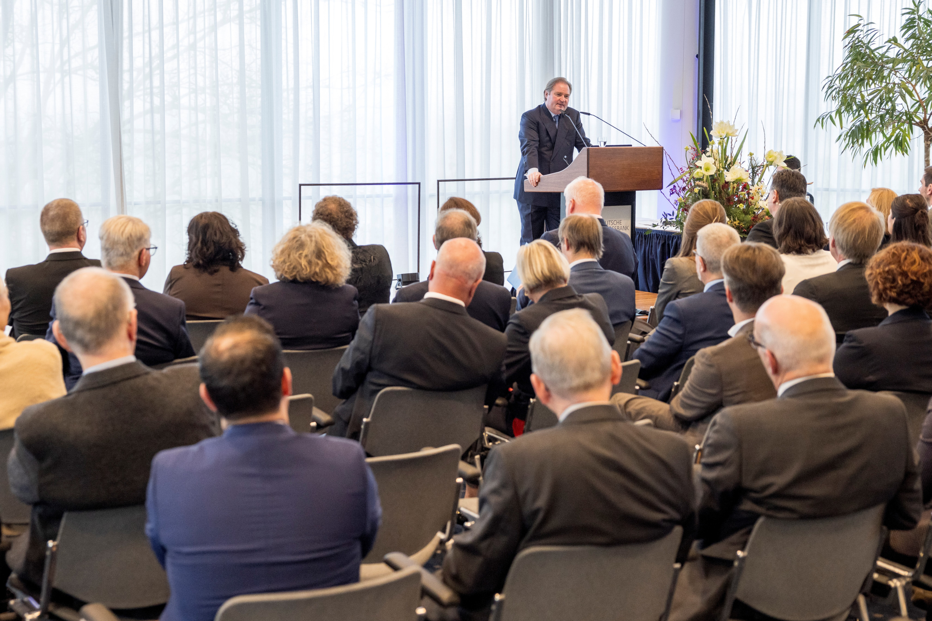 Vor allem bedankte sich Erich Keller aber bei vielen Kolleginnen und Kollegen in und außerhalb der Bundesbank, die ihn im Laufe seiner Karriere unterstützt hatten – von den Beschäftigten, die den Internatsbetrieb am Laufenden halten, über die Professorinnen und Professoren bis hin zu Ansprechpersonen der Kommunen im Westerwald. Besonders erwähnte er seine langjährige Sekretärin Iris Mies, seinen Stellvertreter Andreas Kremer – und seine Ehefrau Birgit Keller: „Du hast mich immer aufgebaut und großartig unterstützt. Ich hoffe, Du bist als mein künftiger Dienstherr genauso nachsichtig mit mir, wie es die Bundesbank war.“