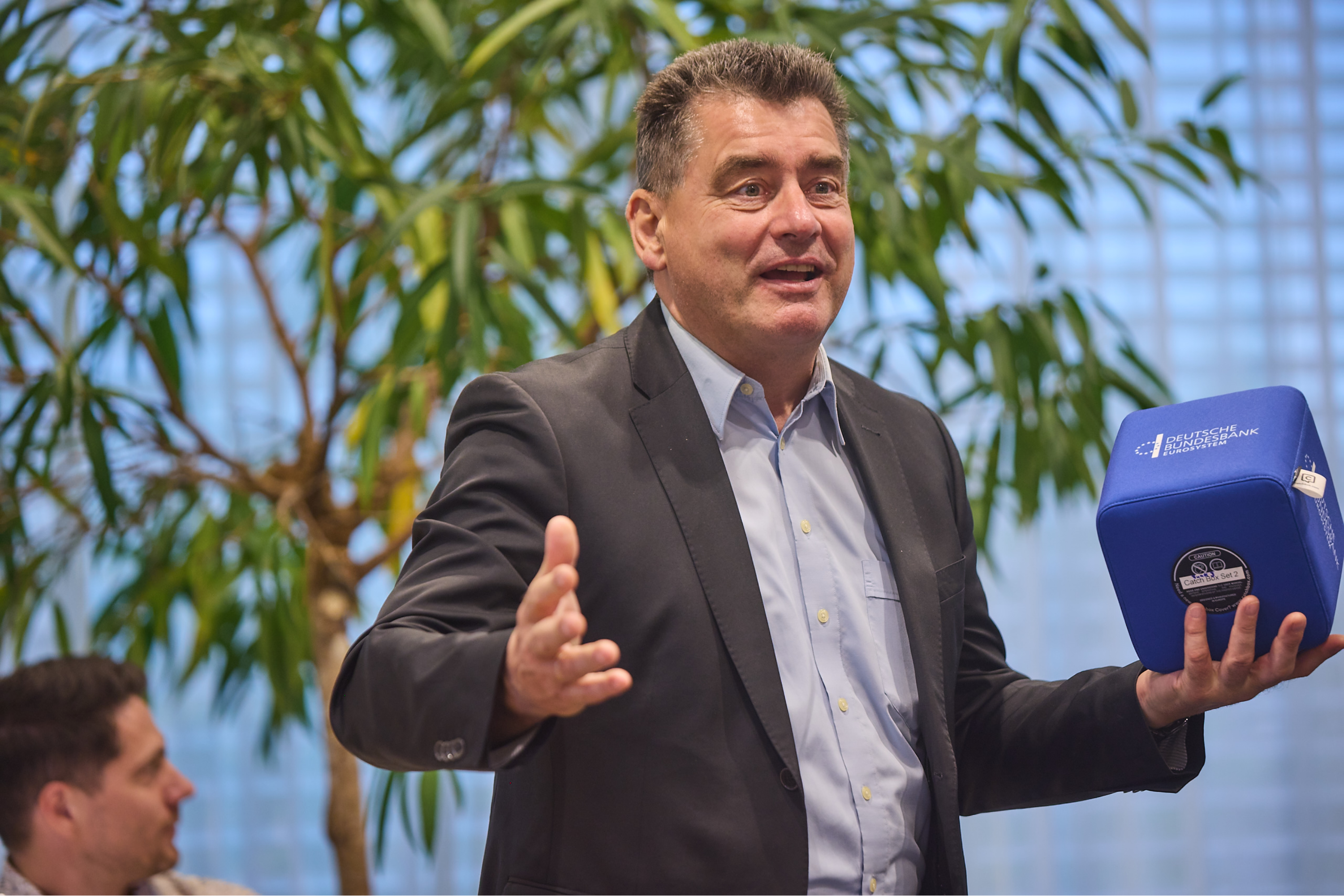 Hochschulrektor Erich Keller moderierte die Dikussionsrunde und warf den Mikro-Würfel den Fragenden zu. ©Dieter Roosen