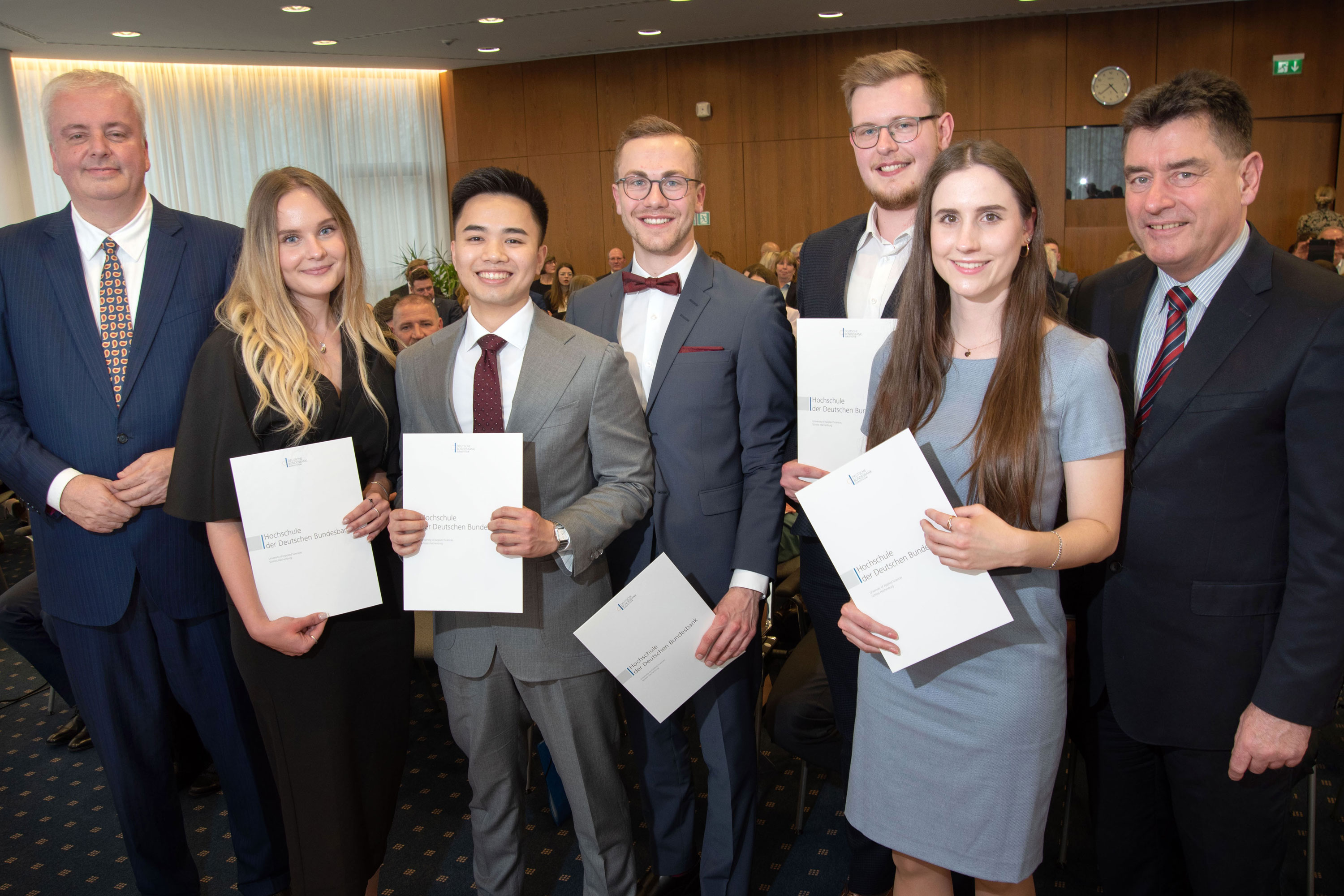 Der 19. Bachelorjahrgang der Hochschule der Bundesbank in Hachenburg hat in der vergangenen Woche erfolgreich ihren Abschluss gefeiert. In diesem Jahr erhielten fünf Absolventen und Absolventinnen die Gesamtnote „sehr gut“ – so viele wie noch nie seit der Gründung der Hochschule im Jahr 1980. Dies sei eine absolute Spitzenleistung, betonte  Rektor Erich Keller in seiner Rede bei der akademischen Abschlussfeier. Alle Absolvent*innen erhielten im Anschluss von Vorstandsmitglied Burkhard Balz ihre Bachelorurkunden überreicht.