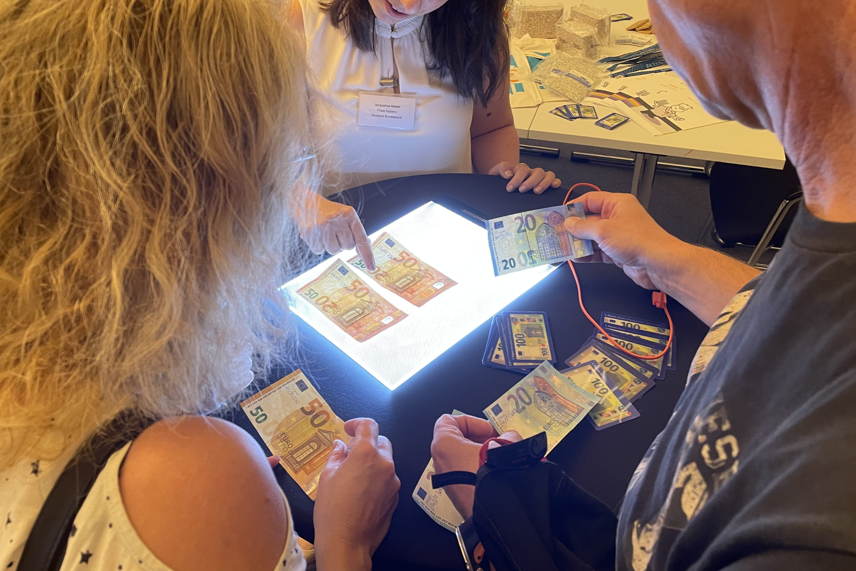 Verschiedene Führungen ermöglichten es den Gästen, in die wechselhafte Geschichte des Denkmals einzutauchen und das Studierendenleben an einer modernen Hochschule im barocken Ambiente kennenzulernen. Besonders beliebt waren die Einblicke in die Aufgaben der Bundesbank, die sich als Arbeitgeber und Studienpartner präsentierte. Weiterführende Informationen zum Studium gaben Dozenten und Studierende der Hochschule zusammen mit Kolleginnen und Kollegen des Zentralbereichs Personal. Aber auch rein virtuell ließ sich die Welt des dualen Bachelorstudiums „Zentralbankwesens“ mittels VR-Brillen erleben. Am Informationsstand der Filiale Koblenz konnten sich Interessierte zudem über Falschgeldprävention informieren.