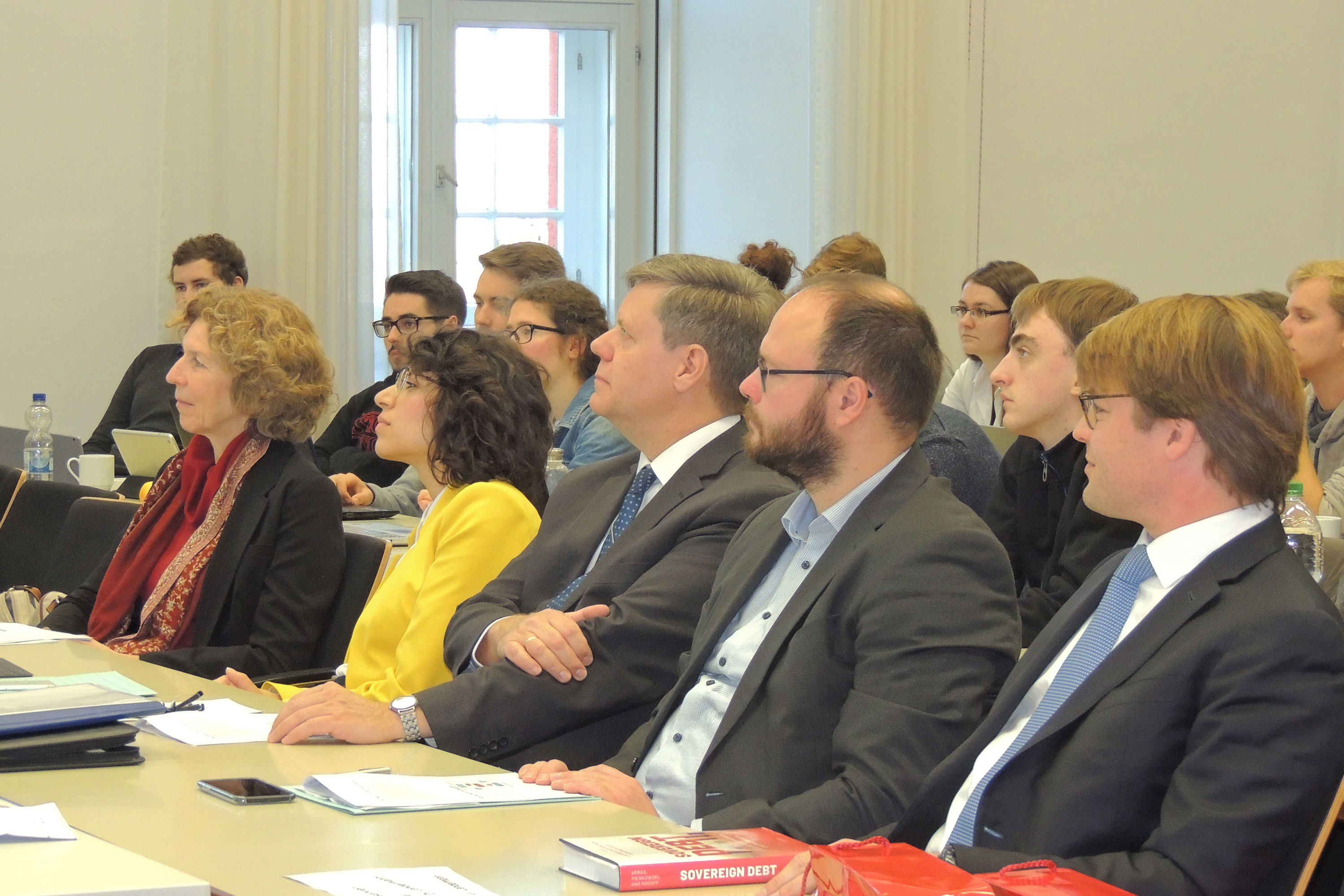 Die lebhaften Diskussionen profitierten sowohl von dem breiten theoretischen Wissen als auch von den umfangreichen praktischen Erfahrungen, die beide Referenten im Zusammenhang mit verschiedenen Staatsschuldenkrisen in der Vergangenheit gesammelt haben. Mitarbeiter der Abteilung Finanzstabilität der Zentrale, die für die Deutsche Bundesbank die Mitgliedschaft im IWF koordiniert, nahmen ebenfalls an der Veranstaltung teil und trugen zu der lebhaften Diskussion bei.