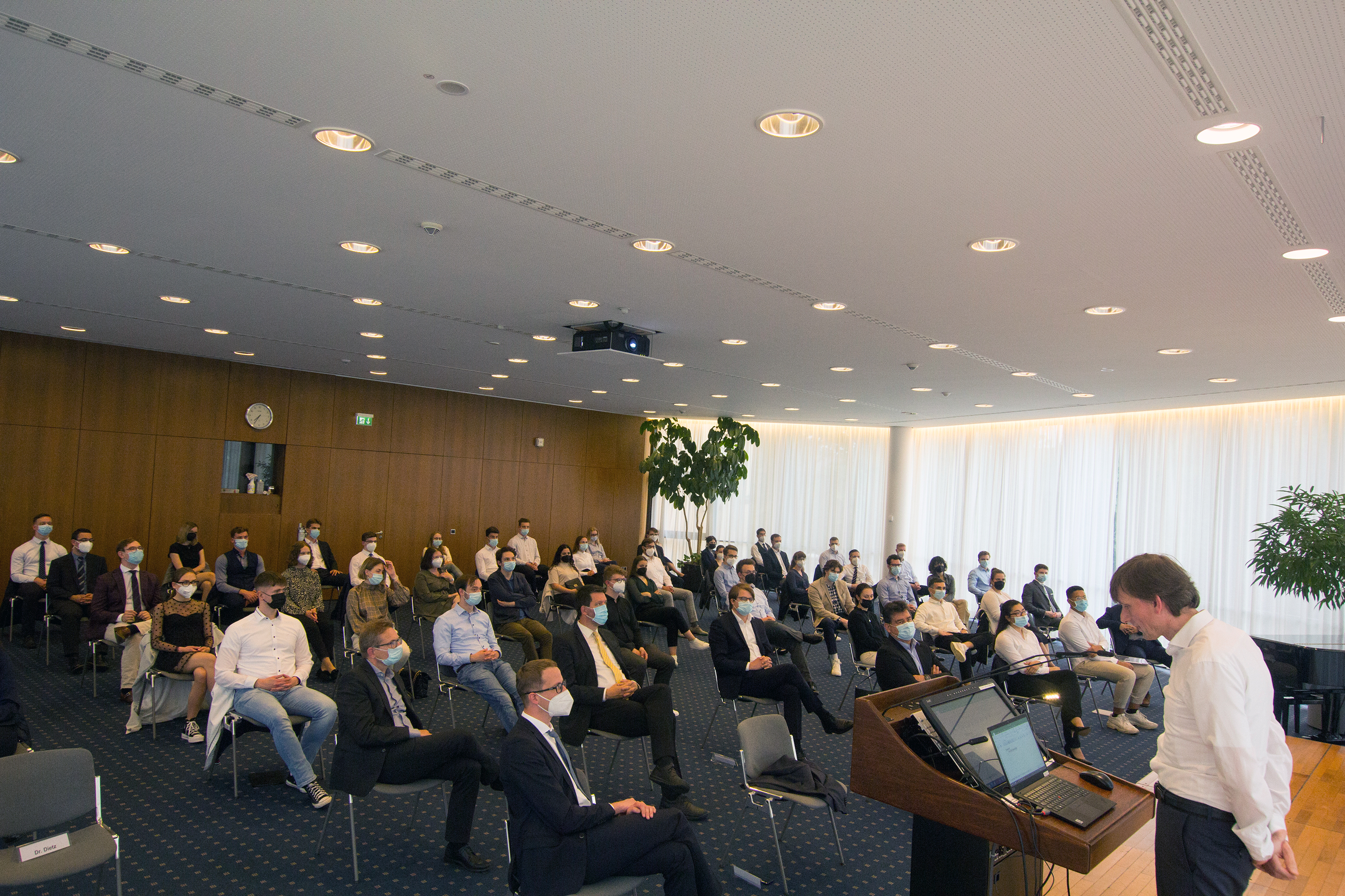Im Anschluss an den Vortrag stellte sich Diemer den Fragen des Publikums, das hiervon sowohl aus dem Saal heraus als auch über die Online-Zuschaltung rege Gebrauch machte. Neben spezifischen Fragen zur Risikosteuerung wurde Diemer auch gefragt, ob der Finanzminister auf die Ratschläge der Finanzagentur höre, ob EU-Anleihen wie die Corona-Bonds, eine Bedrohung für die Finanzagentur darstellten oder welche langfristige Bedeutung seiner Auffassung nach Green-Bonds zukomme. Zur letzten Frage wagte Diemer die Prognose, dass diese in einer Übergangszeit für die kommenden 15 bis 20 Jahre eine Rolle spielen würden. Die Unterscheidung „Grün“ oder „nicht Grün“ werde danach allerdings obsolet werden, so Diemer.