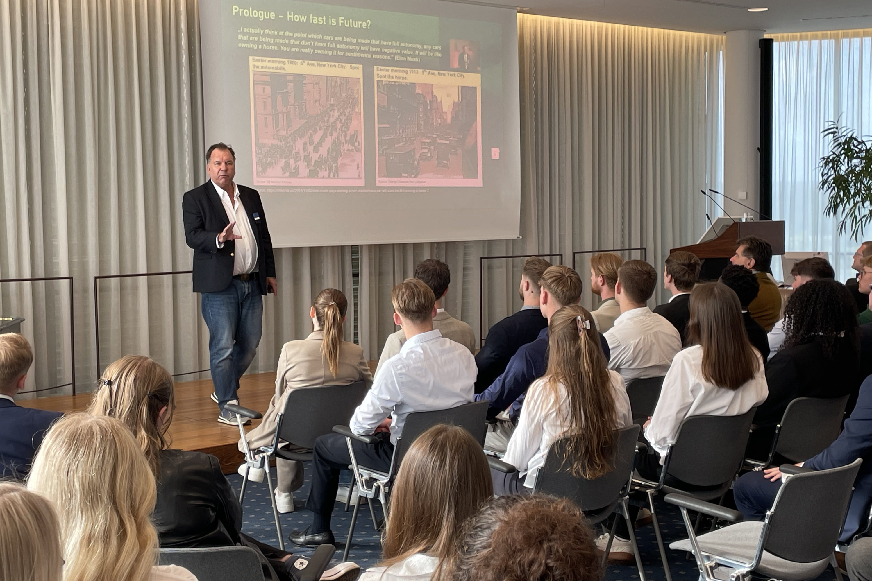 Der Referent der abendlichen Vortragsveranstaltung, Professor Wolfgang H. Schulz vom Lehrstuhl für Mobility, Trade & Logistics an der Zeppelin-Universität Friedrichshafen, skizzierte in seiner Präsentation vor rund 160 Studierenden und Lehrenden der Hochschule sowie weiteren Gästen, wie die heimischen Automobilbauer auf diese Herausforderungen reagieren und welche Strategien sie bei der Transformation hin zu elektrisch betriebenen Fahrzeugen verfolgen. Er ging dabei auch auf eine Reihe von technologischen Trends ein, die die deutschen Autobauer aktuell herausfordern, unter anderem das autonome Fahren und die zunehmende Nutzung von Software in Fahrzeugen.  Anhand von Beispielen stellte er vor, wie einzelne deutsche Hersteller mit diesen Trends umgehen.