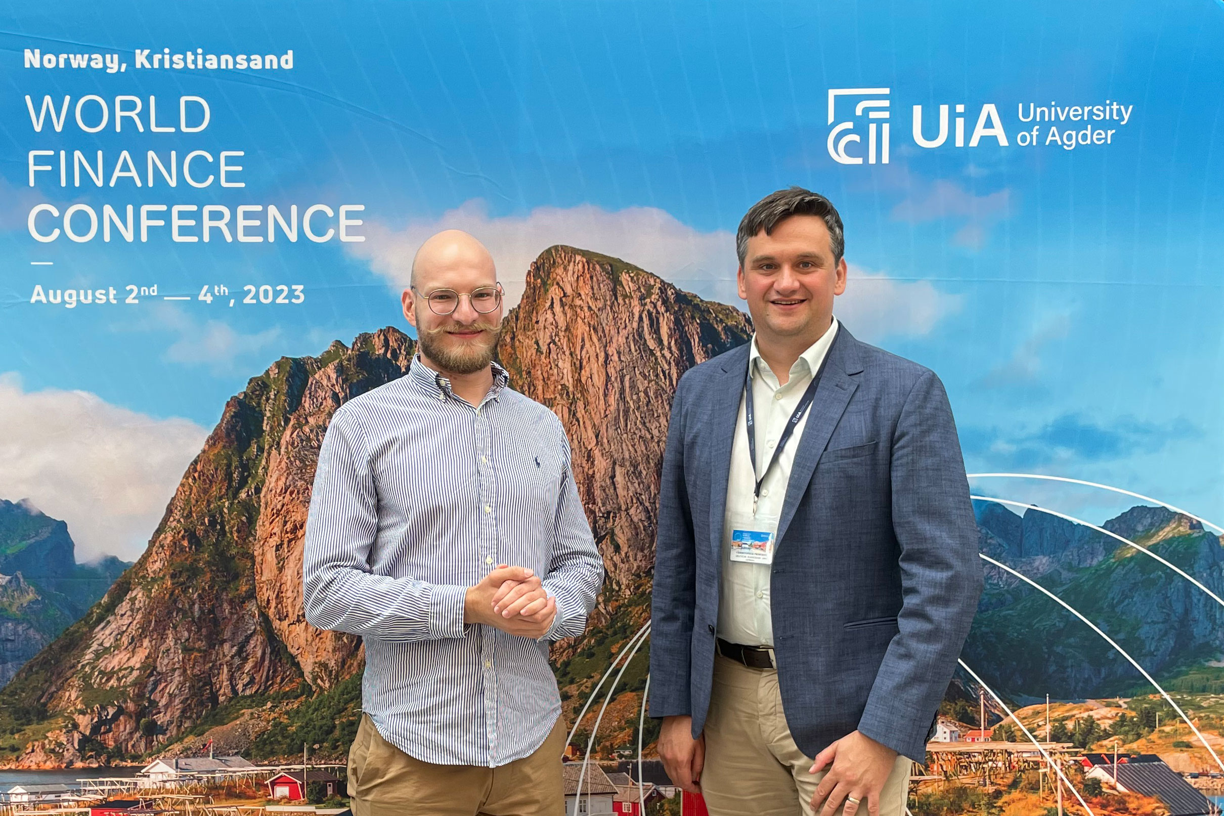 Dr. Christian Kreuzer und Prof. Dr. Christopher Priberny (von links) bei der World Finance Conference 2023 in Kristiansand, Norwegen ©Christopher Priberny