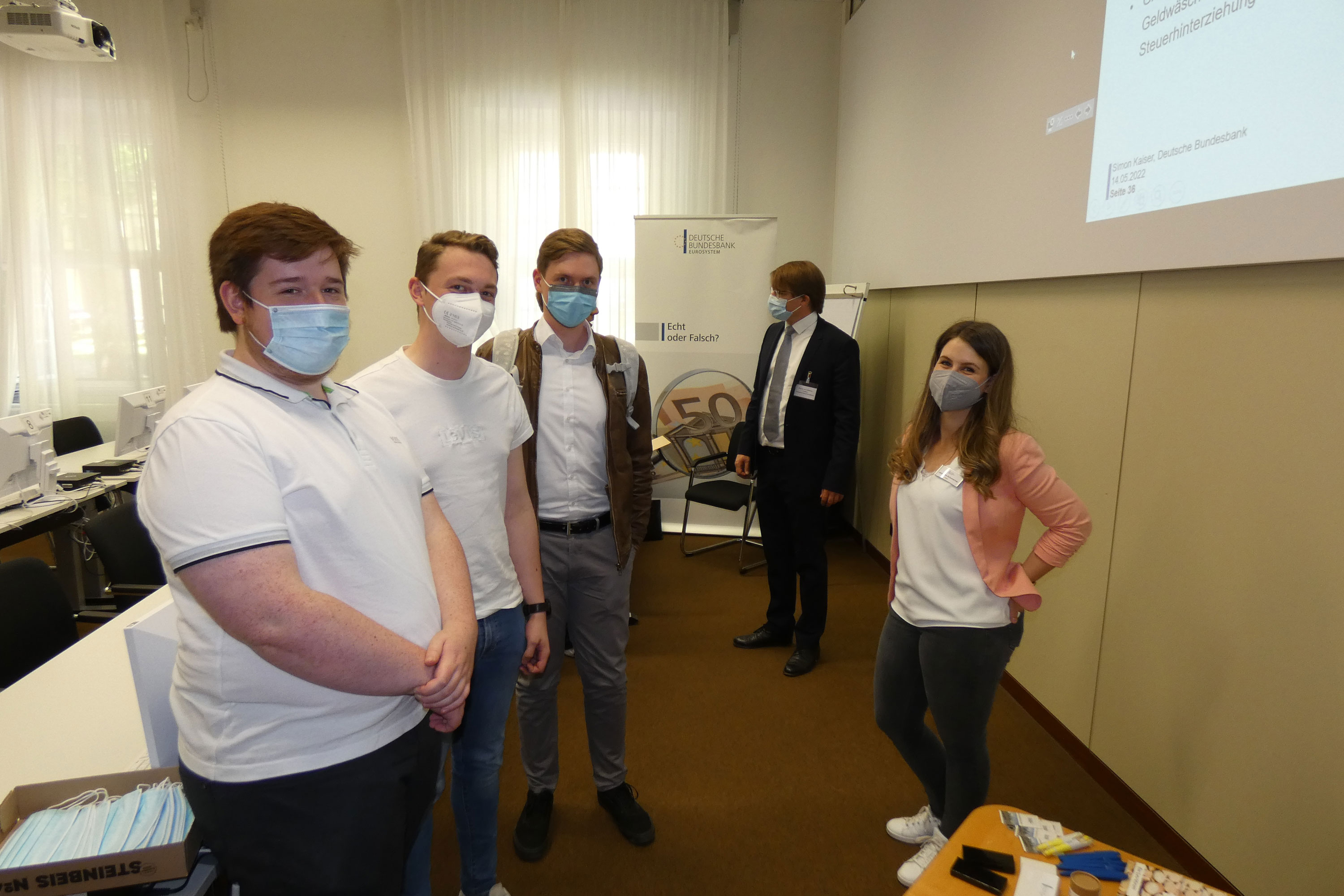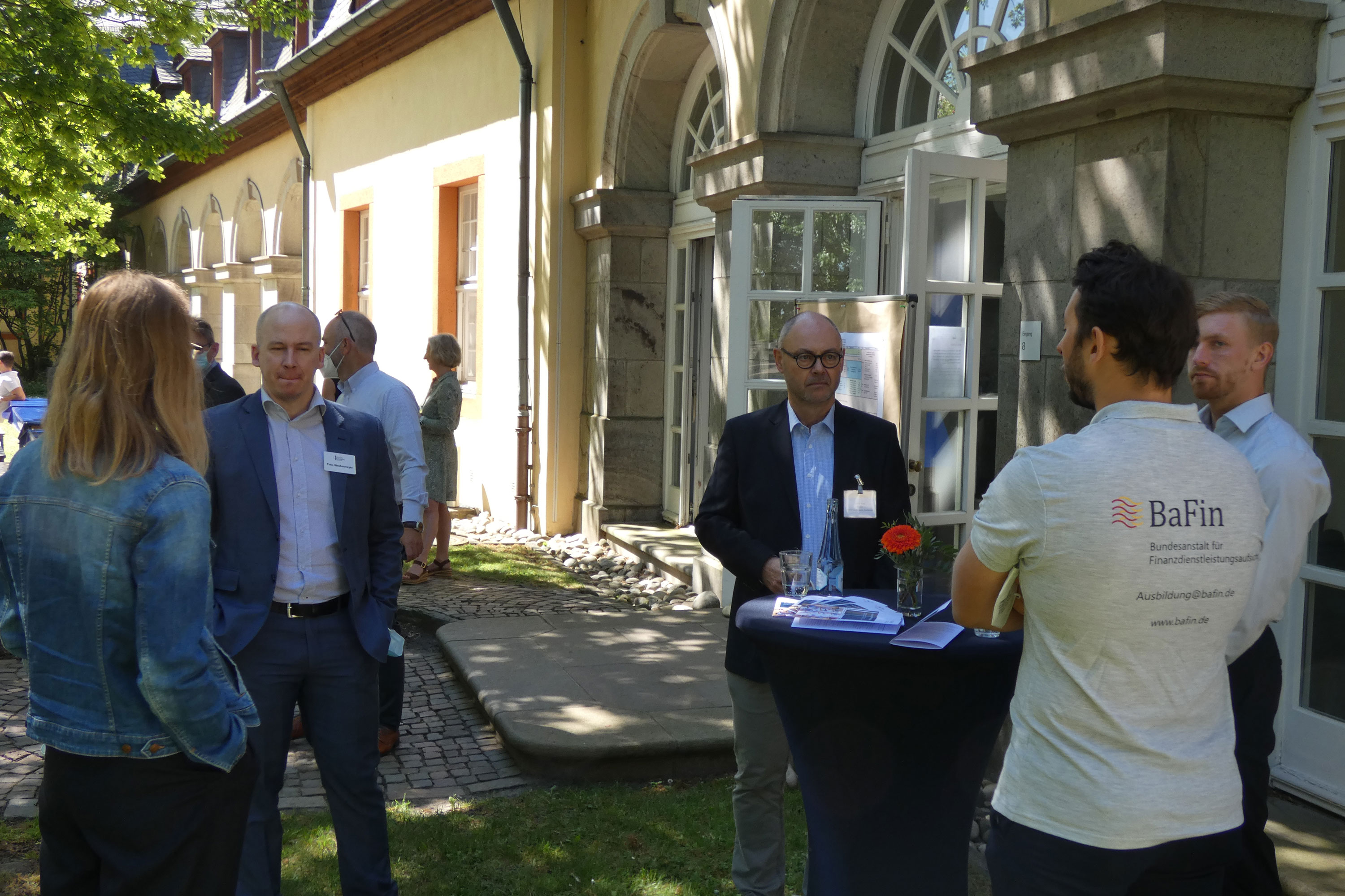 Führungen über den Campus, Infostände, zum Beispiel zur Falschgeldprävention oder zu den Aufgaben der BaFin, sowie moderierte Gespräche mit Studierenden rundeten das Programm ab. Gelegenheiten zum Gespräch wurden reichlich geboten und genutzt. Ein gelungener Tag der Begegnung und des Austausches.