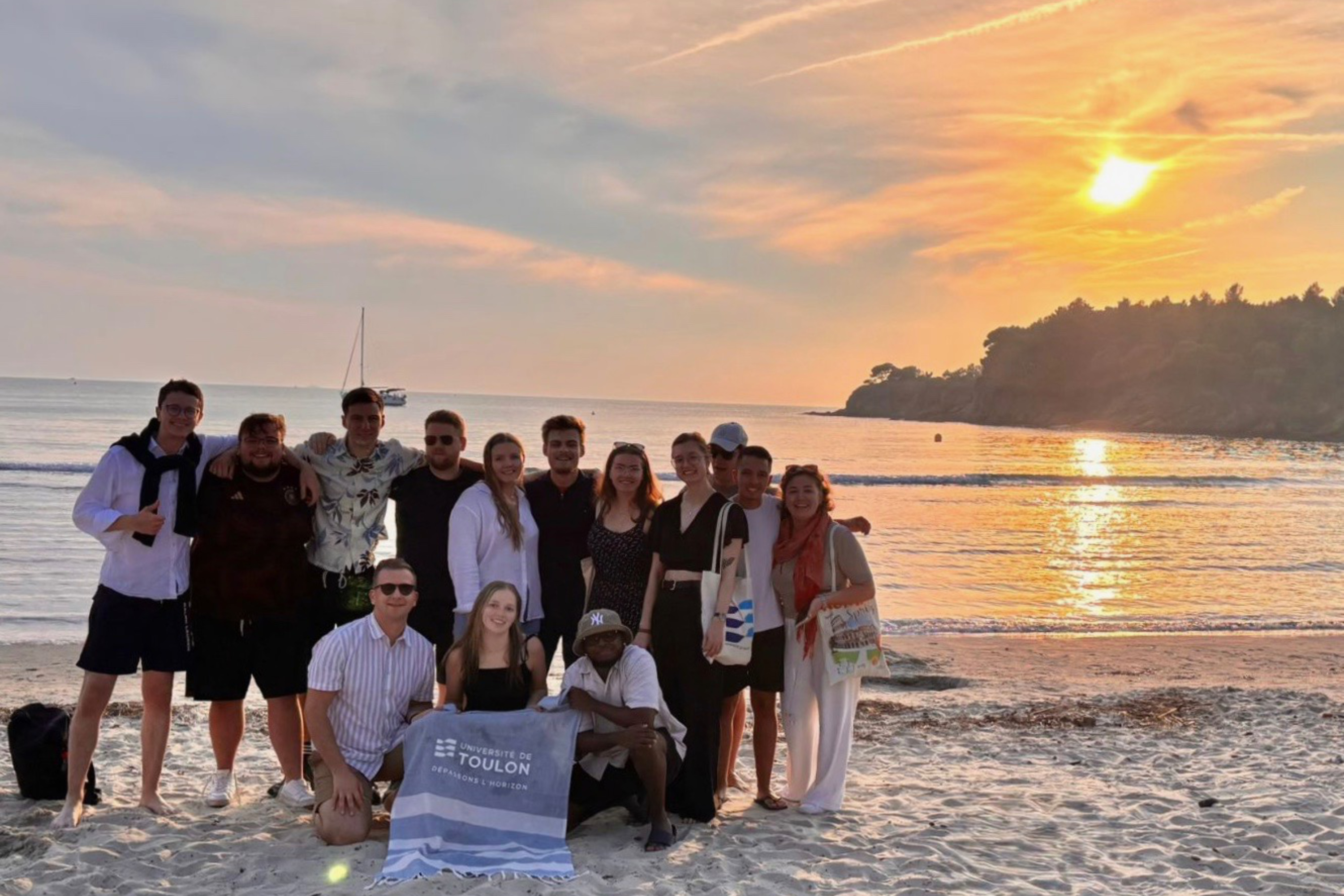 Neben dem akademischen Programm blieb ausreichend Zeit, die französische Lebensart zu genießen und neue Freundschaften zu festigen. Nach dem täglichen Programm in der Universität wurden die Abende gemeinsam bei verschiedensten Veranstaltungen und Events, wie Escape Games, Karaoke, Kayak fahren oder geselligem Miteinander mit Fingerfood verbracht. Am Wochenende erkundete die Gruppe ihm Rahmen einer Bootstour den Hafen von Toulon, der als Marinestützpunkt eine wichtige Rolle für Frankreich spielt. Anschließend ging es mit der Seilbahn auf den Mont Faron, um die Umgebung und die Küste von oben zu bewundern. Besonders in Erinnerung bleibt der Sonntagsausflug mit ein paar französischen Studierenden nach Saint-Tropez und an einen der schönsten Strände der Umgebung. Den gebührenden Abschluss feierten alle Studierenden gemeinsam bei einem Petanque-Turnier und leckeren Drinks.
