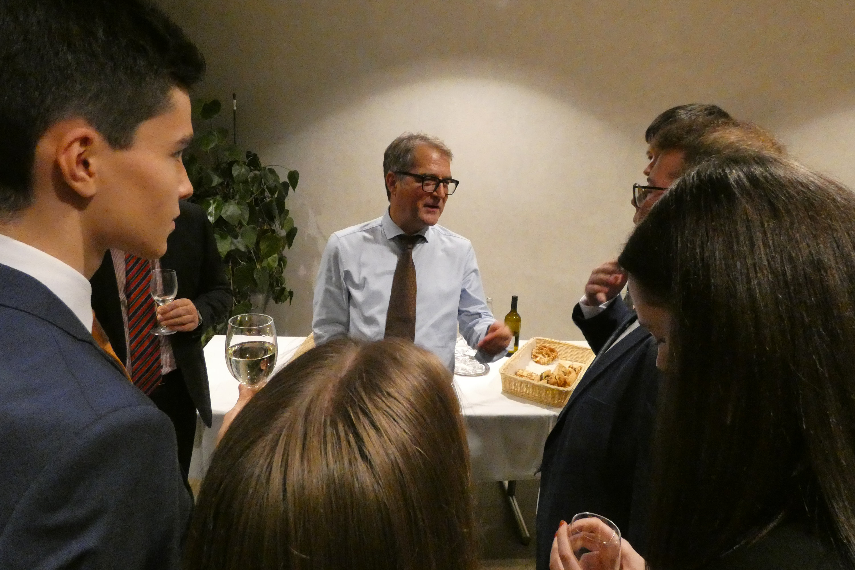 Scheinbar unentwegt diskutierte Volker Wieland mit Studierenden der Hochschule der Bundesbank auch noch lange nach seinem Vortrag über aktuelle wirtschaftliche Probleme und mögliche Lösungsansätze. Man spürte es, es bereitete ihm Freude – und den ihn umringenden Nachwuchs-Notenbankern erst recht.