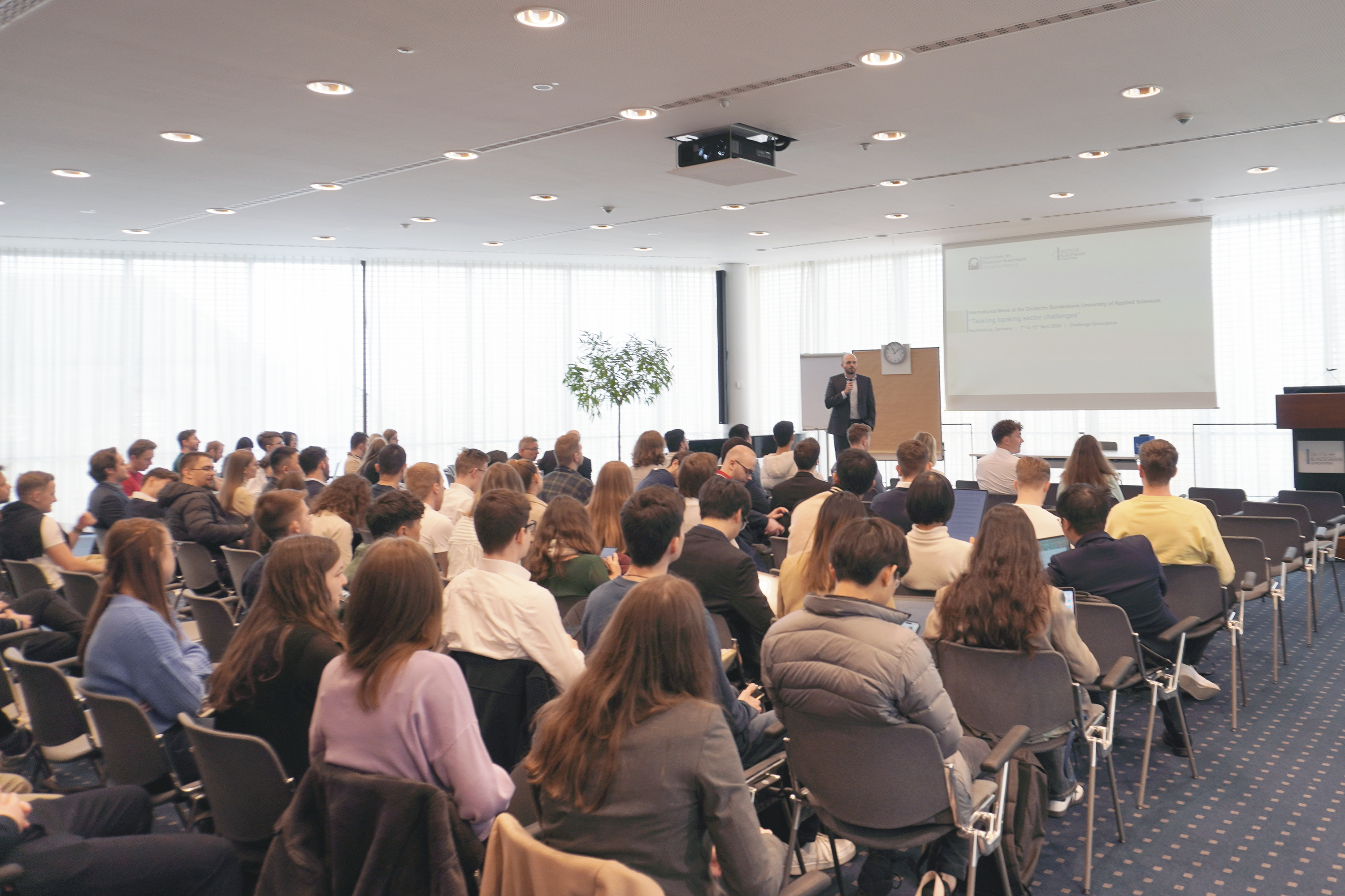 The theme of the International Week, which the Bundesbank’s University of Applied Sciences has been organising for years, was to address current challenges in the banking sector, with a particular focus on the four “Ds”, i.e. digitalisation, decarbonisation, de-globalisation and demographic developments. In April, 22 students from the People’s Bank of China School of Finance of Tsinghua University in Beijing, China, 13 students from the University of Toulon (France), as well as 11 students each from the SGH Warsaw School of Economics in Warsaw (Poland) and the University of Economics in Bratislava (Slovakia) spent one week in Hachenburg. Together with more than 60 Hachenburg students, a large number of international working groups were formed, each of which dealt with the impact of one of the four “Ds” on the banking sector. Each team represented a medium-sized, internationally active credit institution and was tasked with developing longer-term business strategies as concrete solutions to the challenge it had been assigned to. The aim of the exercise was to raise awareness of the different perspectives and experiences of participants from different countries and to bring them together. The results were then shared in short presentations of around 15 minutes. A jury consisting of the heads of the delegations and full-time lecturers from the Bundesbank’s University of Applied Sciences assessed all results and selected the four best teams. These teams went on to present again their results to all participants, who were then invited to vote on the winning team. The “Hachenburg Trophy 2024” was a large chocolate prize, ideal for all to share. In addition to expanding their own knowledge, working in groups and presenting the results together helps students not only exchange ideas in the common working language, English, but also allows them to get to know each other better on a personal level. In this way, they learn a lot about the different approaches in the respective countries and their culture, said Rector Erich Keller, who initiated the very first International Week back in 2012.