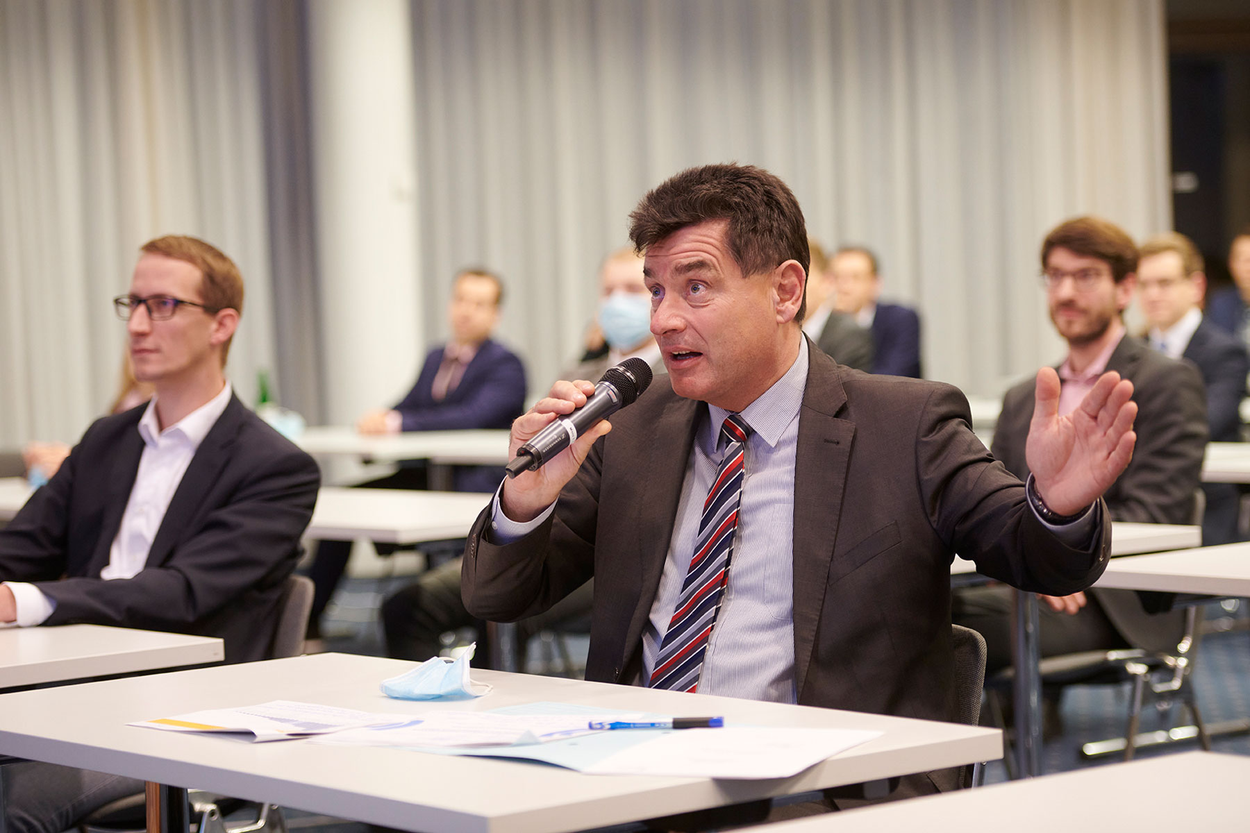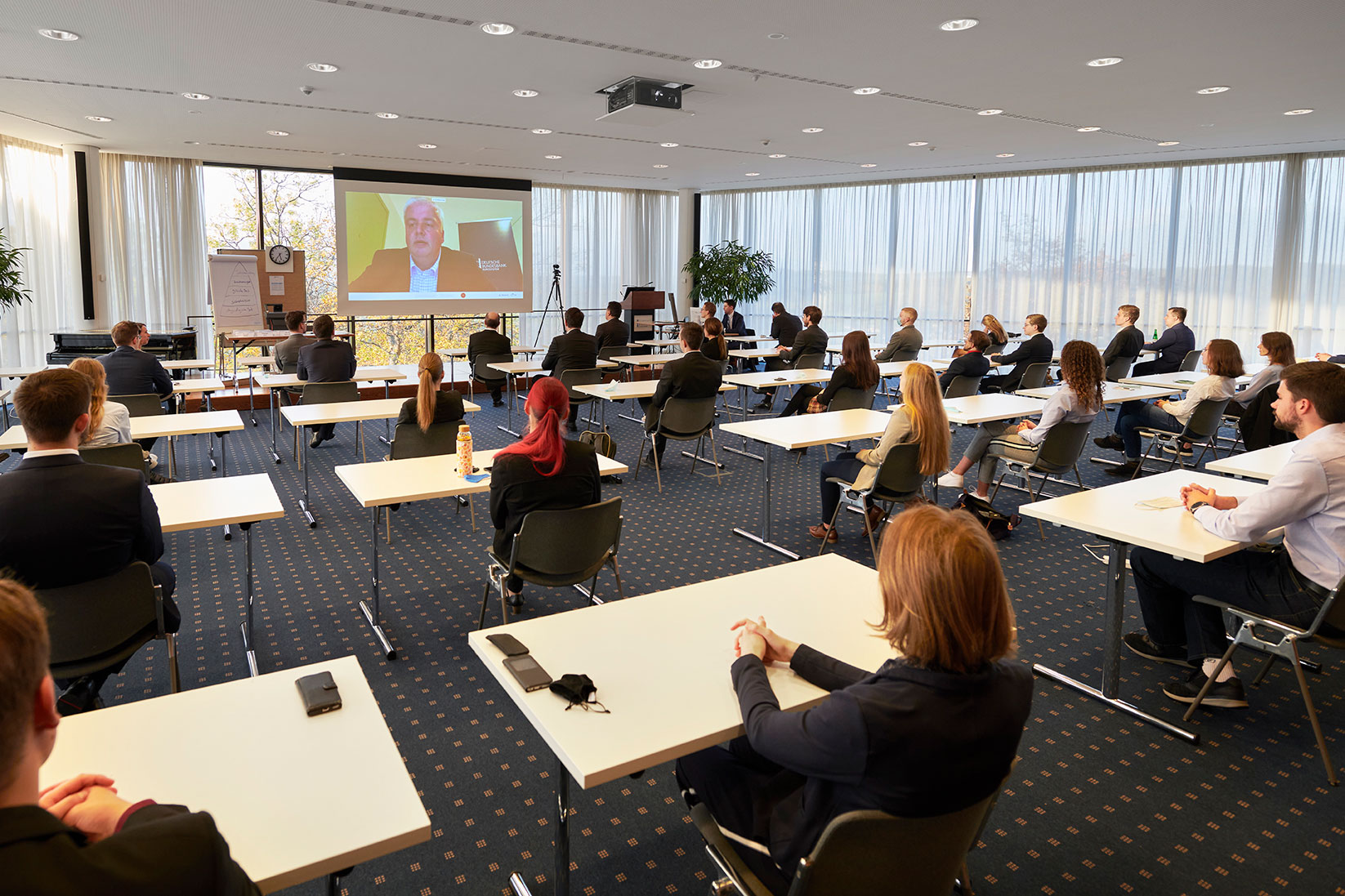 Kicking off the event, Bundesbank Executive Board member Burkhard Balz remarked that he would, of course, have much preferred to welcome Sylvie Goulard, Second Deputy Governor of Banque de France, in person, having known and respected her ever since their career paths crossed at the European Parliament. “But, sadly, coronavirus has put paid to that!”, he lamented. Ms Goulard therefore joined the event via live video link from Paris, while Mr Balz participated from Frankfurt. Around 250 students across Germany participated from home, while just under 100 students and lecturers attended the event in Hachenburg, spaced out across two lecture halls.